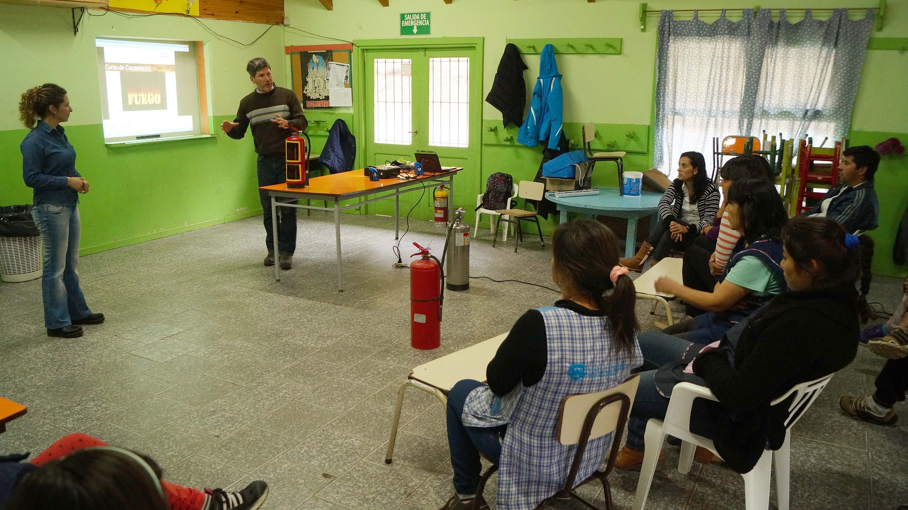 La segunda parte se basó en la protección contra incendios; uso de extintores y simulacro de cómo apagar un fuego.