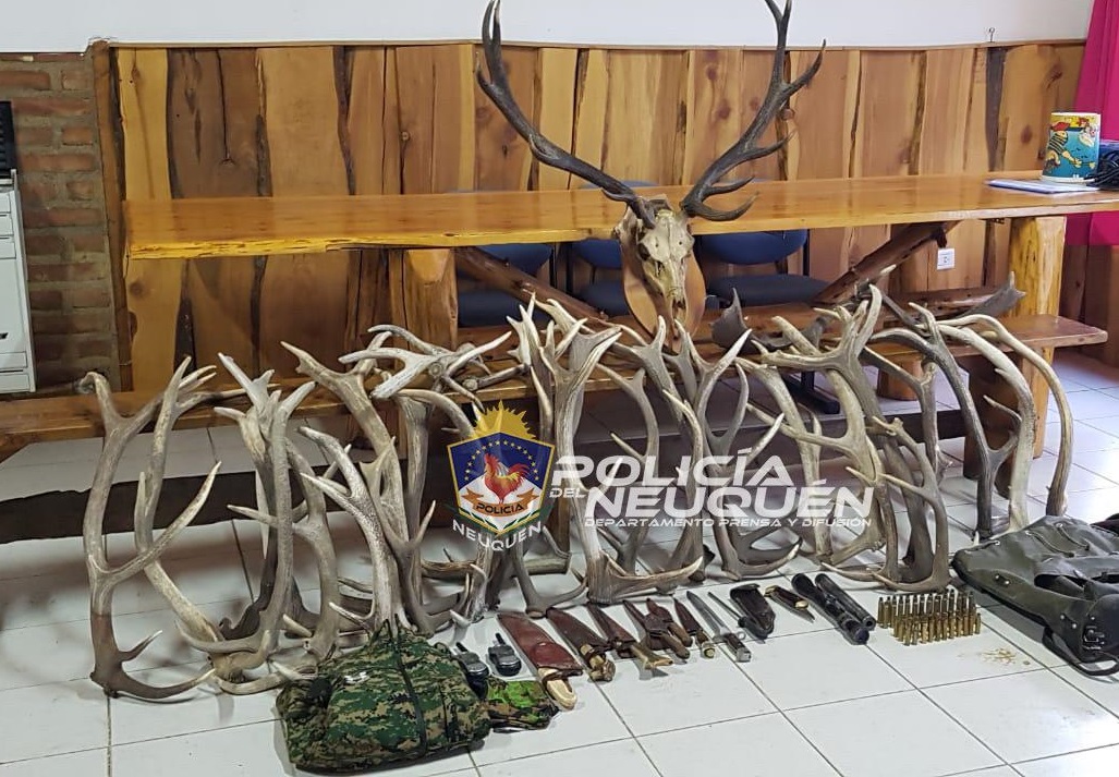 El procedimiento se hizo este viernes en un domicilio del barrio El Mallín. Hallaron astas de ciervos, decenas de cartuchos servidos, una mira telescópica y un silenciador. Hay dos personas sospechadas.