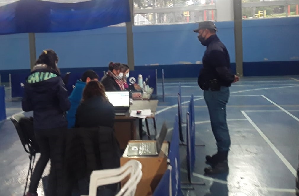 Unos 35 empleados policiales fueron vacunados este viernes con la primera dosis, en el gimnasio municipal Adrián Mercado de Villa La Angostura.