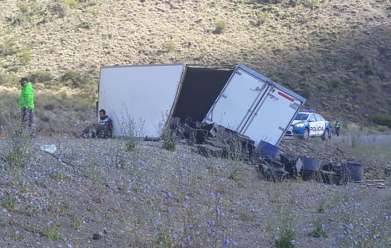 El siniestro vial ocurrió esta mañana de lunes, cuando el transporte circulaba por la ruta nacional 237, en dirección a Bariloche. El conductor fue trasladado en ambulancia hasta el hospital de la vecina ciudad, porque presentaba varios golpes.