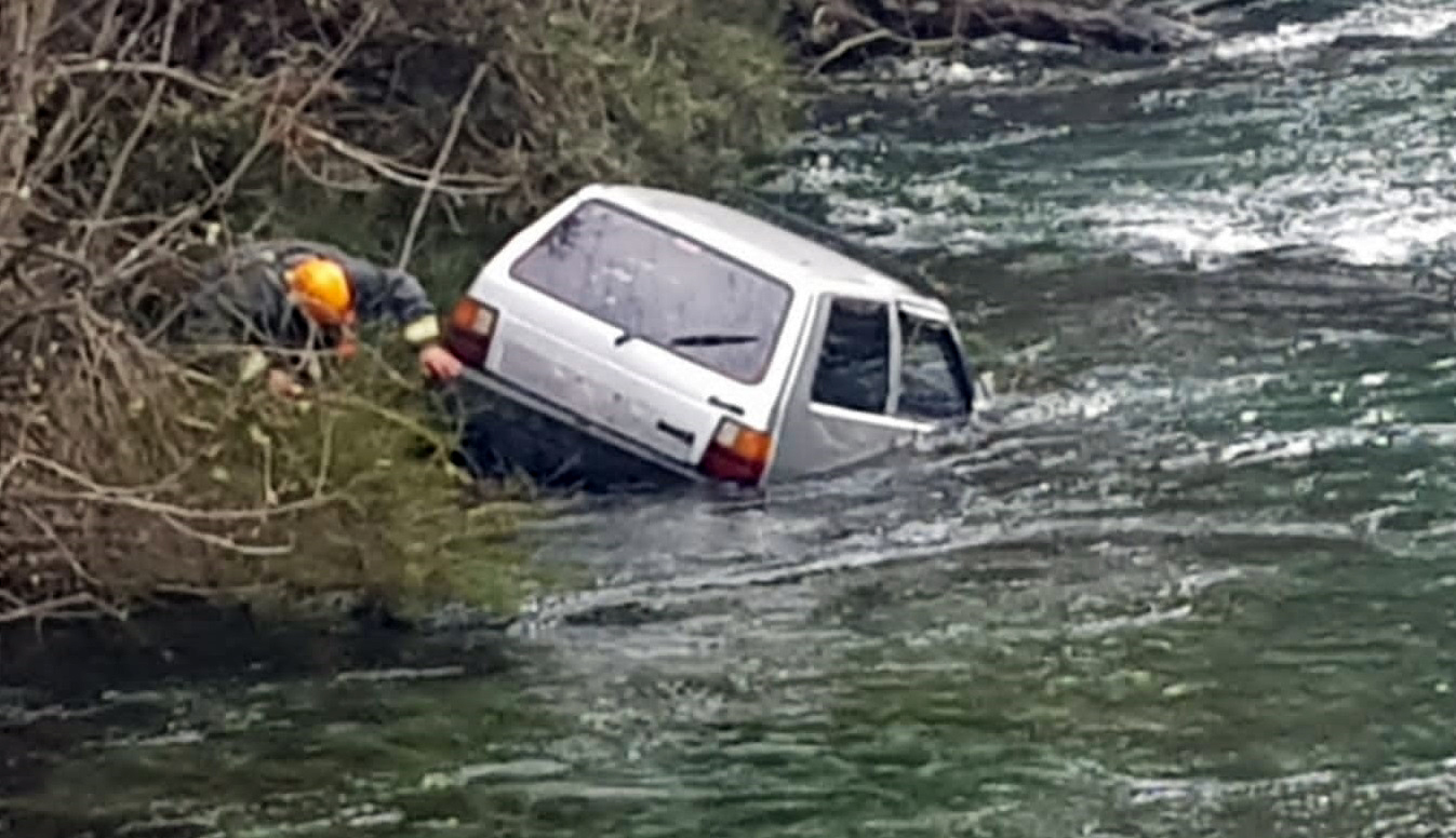 Video y fotos: Un auto se desbarrancó hasta el río Correntoso