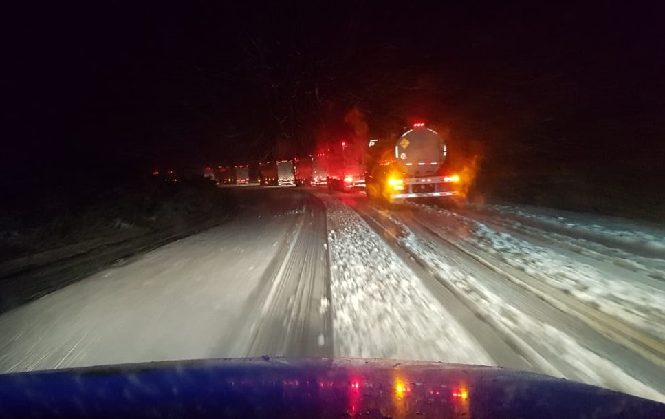 Dos camiones quedaron atravesados la noche del martes, a la altura de la estancia Chacabuco y bloquearon el tránsito. Decenas de vehículos y transportes de cargas no pudieron avanzar en medio de una intensa nevada. Personal de Coarco colaboró en el operativo que finalizó ayer por la mañana.