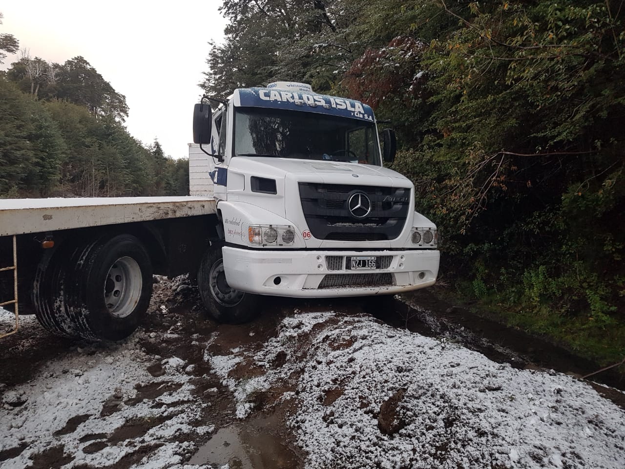 Por el hielo y la nieve se produjo el vuelco de un vehículo de carga