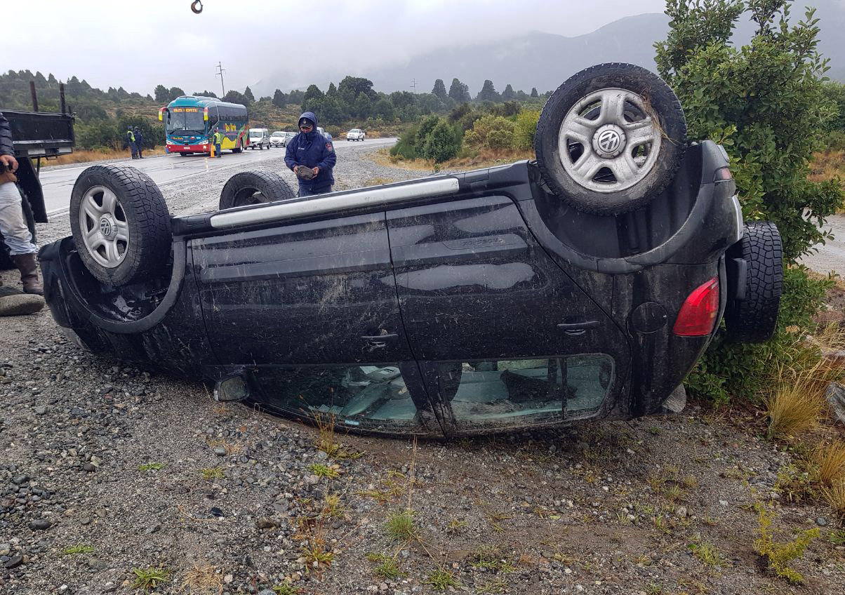 El siniestro vial ocurrió este viernes en el sector de la recta de Jones. El hombre manejaba un Volkswagen Criossfox, en dirección a Bariloche, cuando perdió el control y volcó.