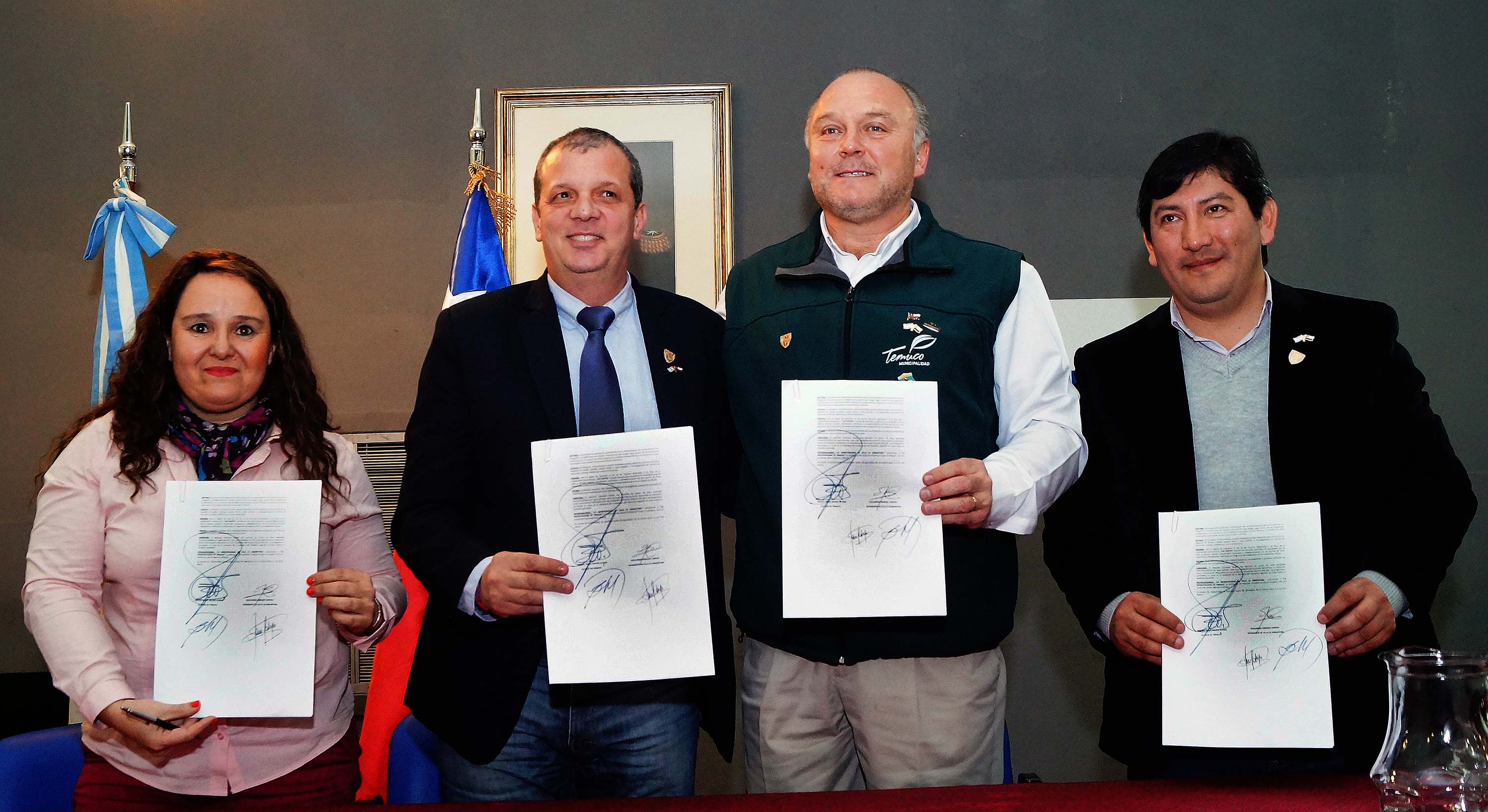 El pasado Jueves en el salón principal del Concejo Deliberante, el intendente Caruso  firmó con el Alcalde de Temuco, Miguel Ángel Becker, un convenio de cooperación y amistad que tiene como objetivo  impulsar y dar creciente contenido a los vínculos de amistad y de cooperación entre ambas ciudades