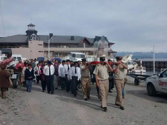 La imagen navegó el lago, fue llevada a la península Huemul y luego trasladada a la iglesia Catedral, donde se realizó una misa.