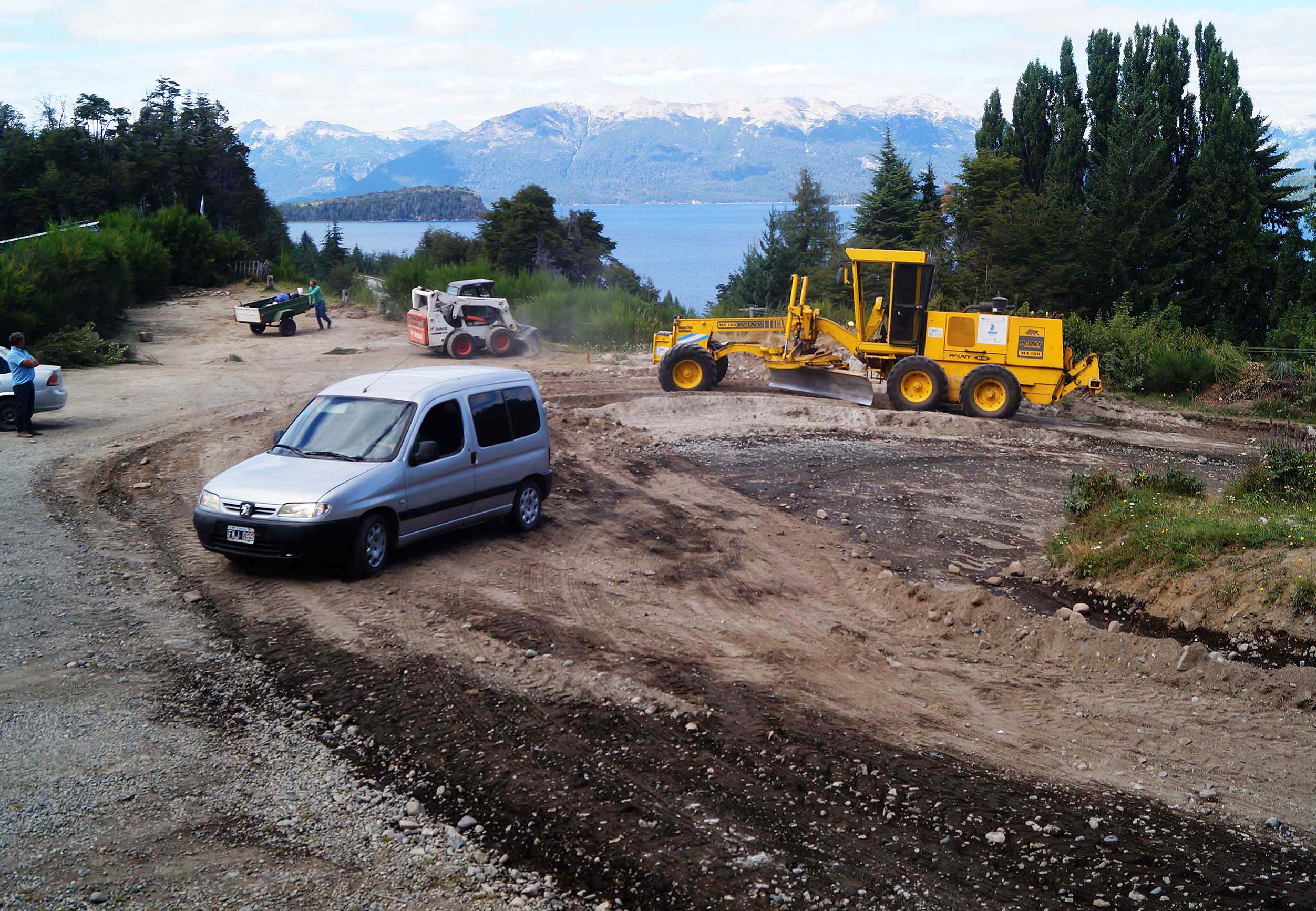 Con máquinas y personal de Obras Públicas se está ampliando el ingreso al barrio para que la calle tenga dos manos más anchas, además de hacer un mirador a los lagos Correntoso y Nahuel Huapi.