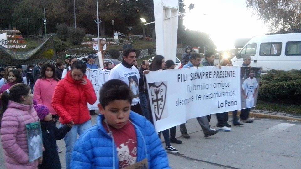 Un grupo de unos 100 vecinos, familiares y amigos de quien fuera "Fili" Alvarado marcharon este miércoles por la avenida principal de Villa la Angostura reclamando por justicia. Fabián Alvarado fue un empleado municipal, pero además un joven deportista, goleador en varias oportunidades de la liga local y regional y muy querido por la comunidad en general.