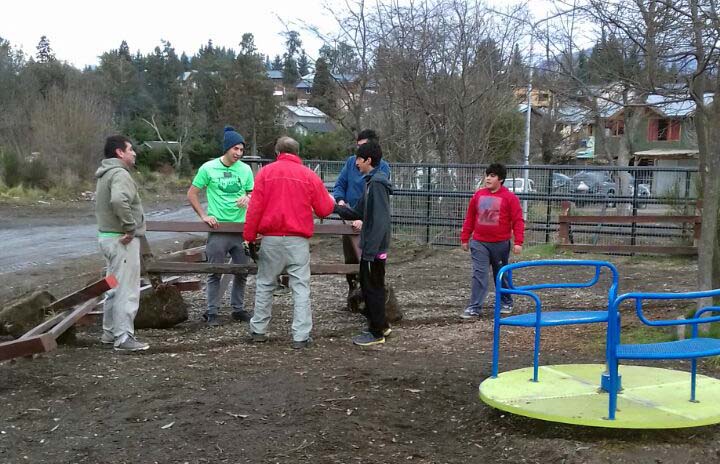 En la Plaza de los Niños en el Barrio Mallin, con la colaboración de un grupo de chicos del barrio, se realizaron tareas en el cerco, relleno de canteros, y una limpieza general de la plaza.