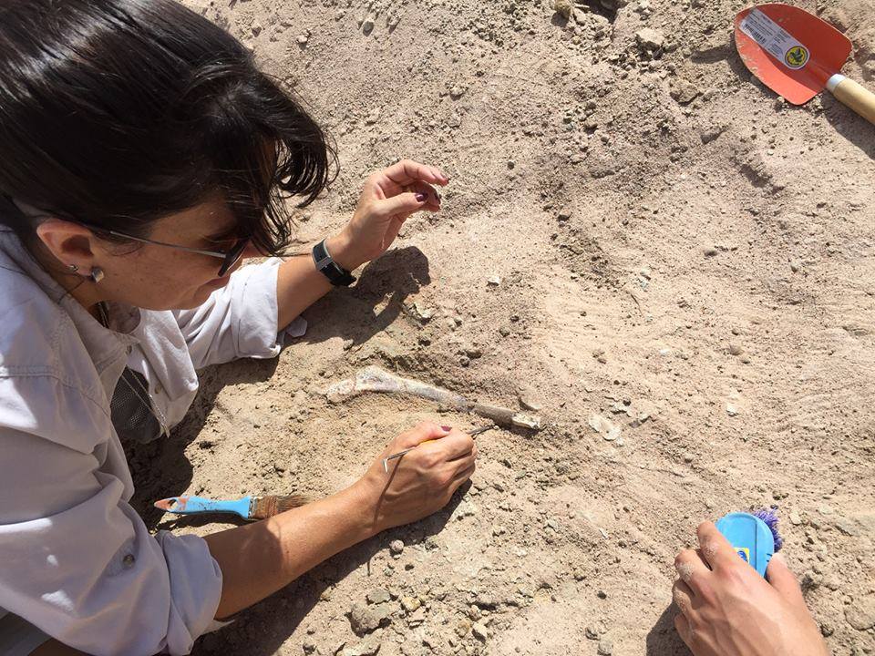 Los paleontólogos se encargaron del rescate de los restos fósiles con la colaboración de un alumno de la carrera de Licenciatura en Geología que se dicta en la Casa de Altos Estudios.