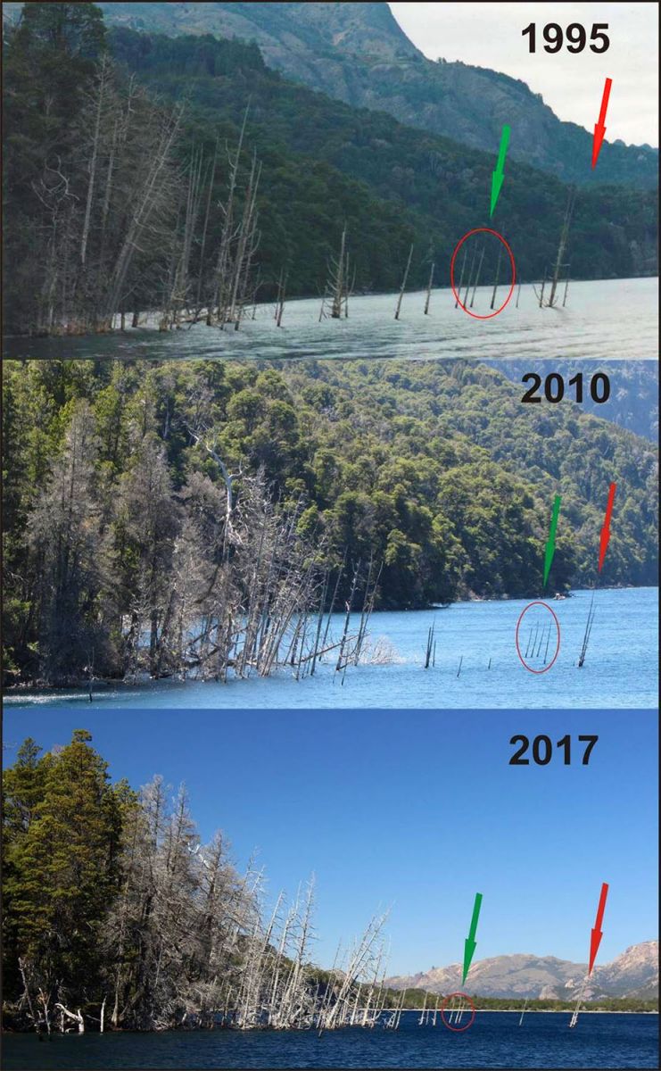 “En años recientes, los pobladores de Traful observaron cambios en el frente del bosque sumergido, como ciertos desplazamientos de roca hacia el lago. Para verificar esos movimientos, realizamos tres viajes al terreno: el primero en 1995, luego en 2010 y 2017”, relató Federico Carballo, becario doctoral en Exactas UBA bajo la dirección de Folguera, y primer autor del trabajo que se publica en Journal of South American Earth Sciences.