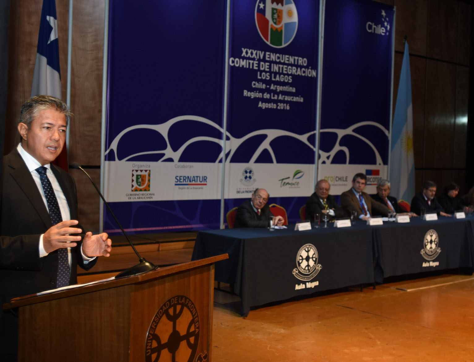 Rolando Figueroa presidió el acto inaugural del encuentro binacional junto al intendente del Gobierno Regional de La Araucanía, Andrés Jouannet Valderrama; el embajador de la República Argentina en Chile, José Octavio Bordón; y el embajador de Chile en la República Argentina, José Antonio Viera-Gallo Quesney.