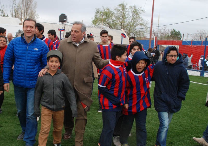 El gobernador Jorge Sapag y el mandatario electo y Economía y Obras Públicas, Omar Gutiérrez, inauguraron la nueva cancha de césped sintético del Club Social y Deportivo San Lorenzo, de la ciudad de Neuquén. “El deporte es educación; y es fundamental para el desarrollo, contención y aprendizaje de nuestros niños”, dijo Sapag