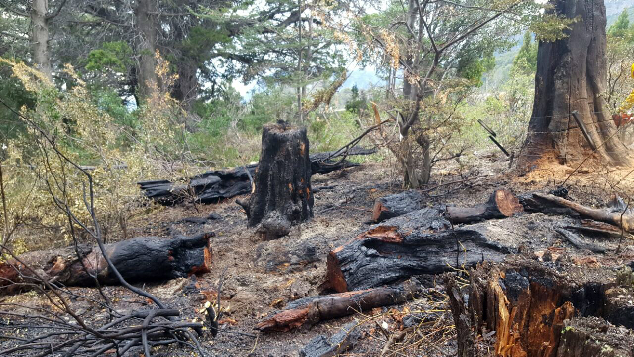 Personal de Parques nacionales hizo el derribo de estos dos árboles y de esta manera los bomberos pudieron controlar por completo este siniestro.