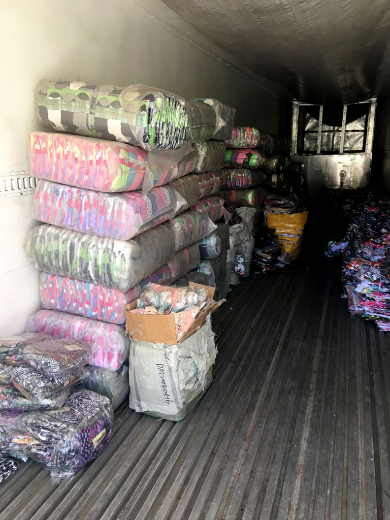 Al retirar los paneles, se encontraron 46.000 piezas de indumentaria sin declarar, compuestas por medias, shorts, pantalones, blusas, trajes de baño, carteras, ropa interior y polleras.