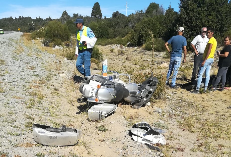 El hombre, que manejaba una Harley Davidson de 1600 cc, aseguró que perdió el control en una maniobra por esquivar a un auto color blanco que se adelantó a otro ocupando el carril contrario. Tuvo que ser derivado en ambulancia al hospital de San Carlos de Bariloche