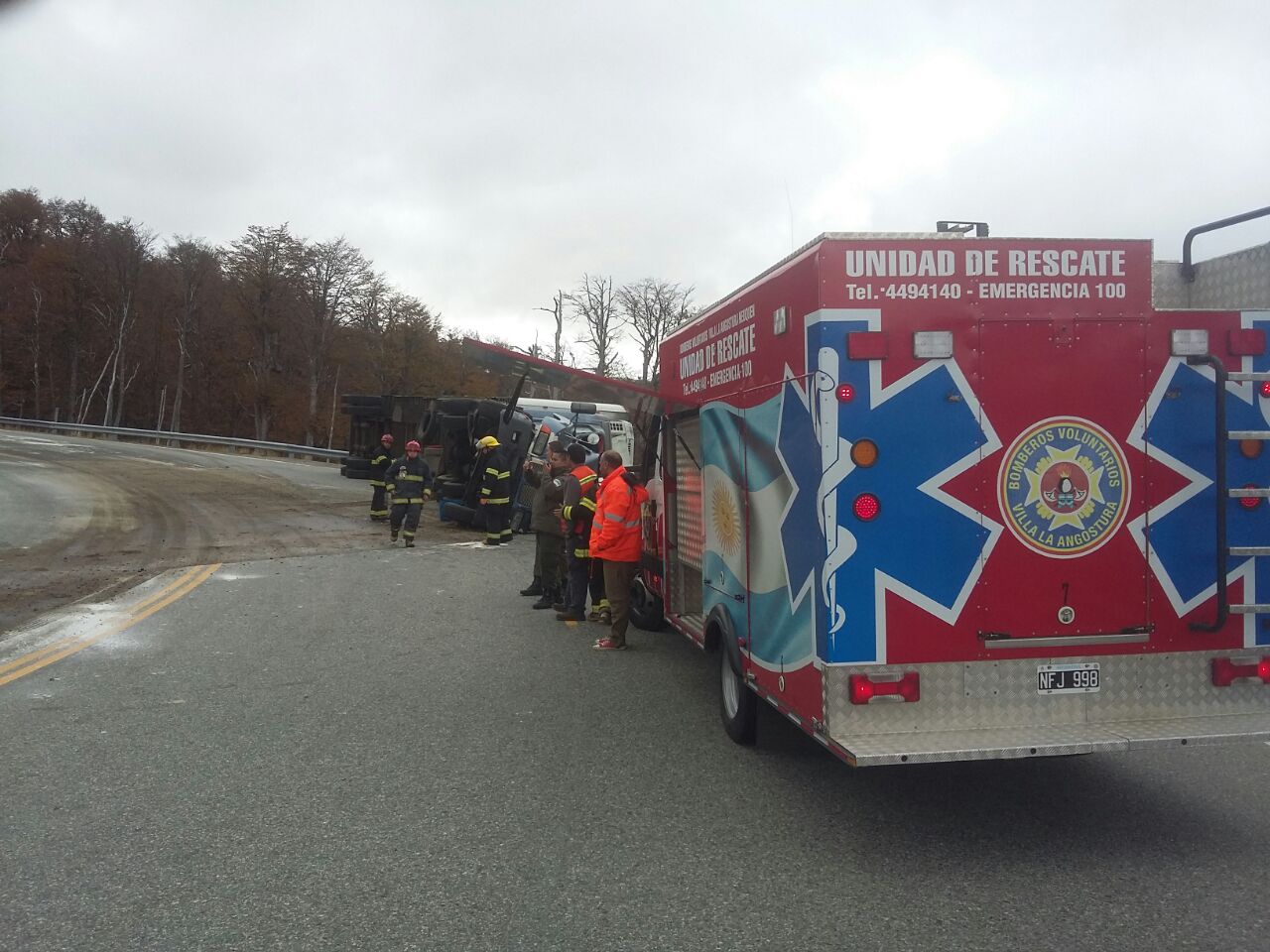 En esta oportunidad ocurrió a la altura del kilómetro 29 kilómetros rumbo al paso fronterizo donde el camión no rompió su térmico, pero si hubo un derrame de combustible que tuvieron que controlar y limpiar los Bomberos Voluntarios de Villa la Angostura.