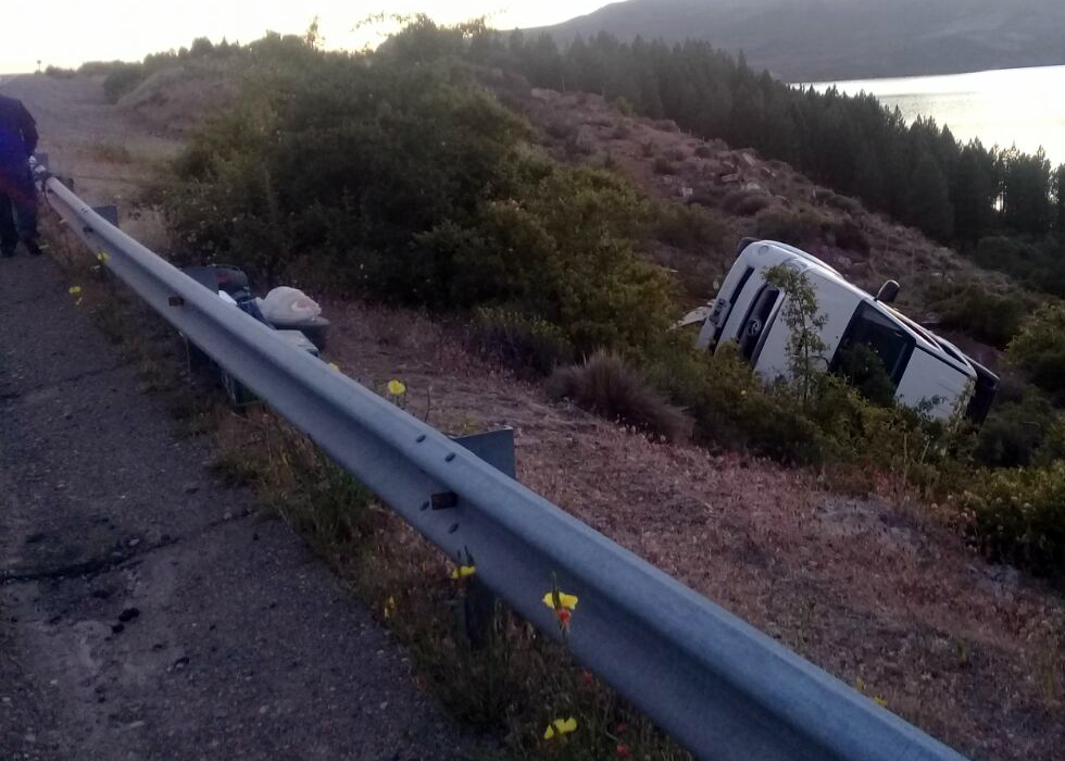 Conducía un hombre y un matrimonio lo acompañaba. Por fortuna ninguno sufrió lesiones y salieron de la camioneta, que quedó volcada a varios metros de la cinta asfáltica, por sus propios medios.