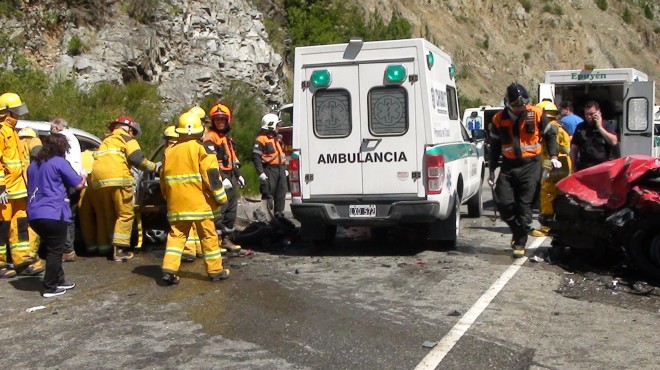 El accidente ocurrió este miércoles poco después de las 16 y fue protagonizado por un VW Vento rojo, patente AA720NT, conducido por un comerciante de Esquel; mientras que a bordo de una Renault Kangoo gris viajaba una familia de turistas, que salían de la Comarca Andina.