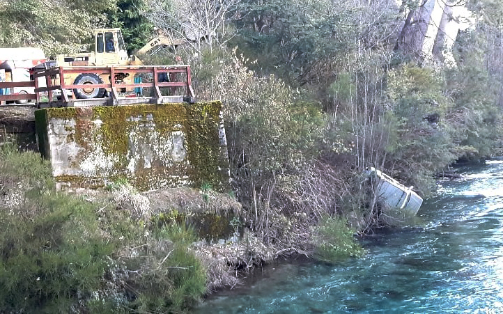 Un Fiat Uno terminó en el río Correntoso luego que, por un desperfecto mecánico, su conductor no pudo lograr detener la marcha. El auto fue cayendo en forma lenta por un desnivel de unos cinco metros hasta llegar al agua. Fue en lugar donde hay un estacionamiento, a pocos metros del antiguo puente de madera.