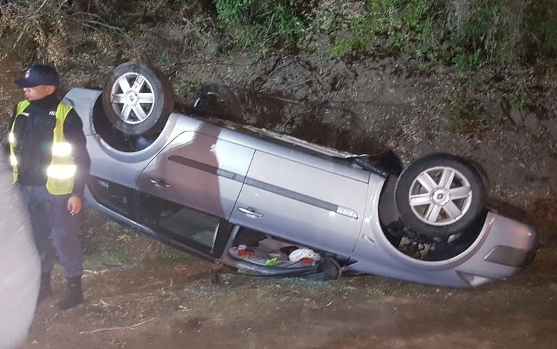 Por causas que se tratan de establecer, el conductor perdió el control del automotor que volcó sobre una banquina. Los tres ocupantes salieron por sus propios medios y presentaban, en principio, golpes a raíz del vuelco.