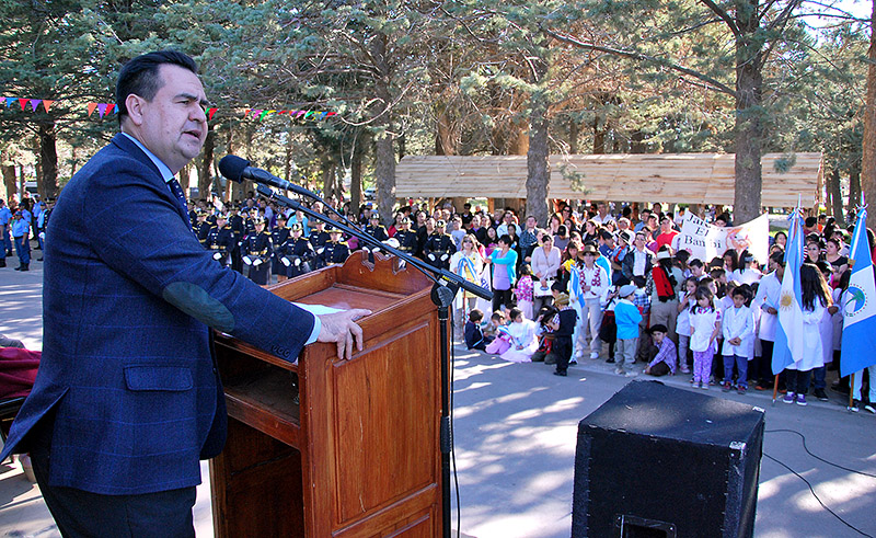 Los actos centrales del aniversario se realizaron esta tarde frente a la plaza principal de la localidad. El intendente realizó un discurso con repaso de la gestión que finaliza e importantes anuncios para los vecinos.