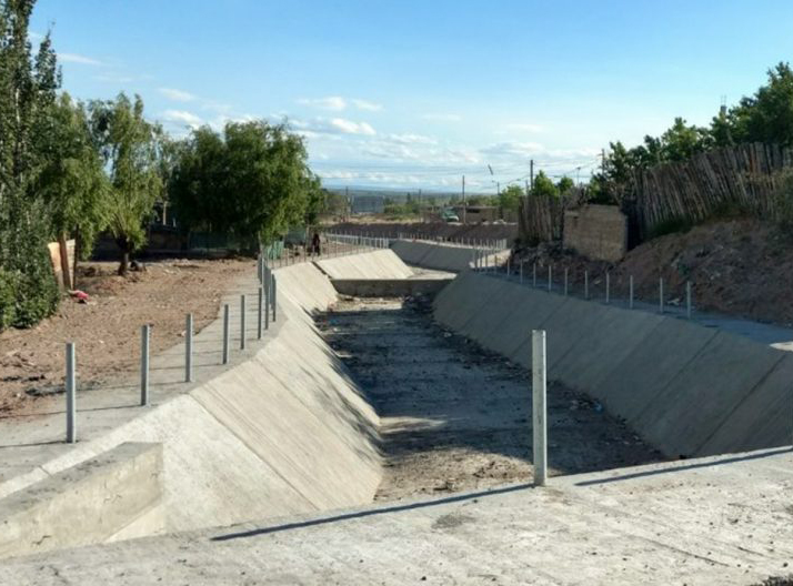 La primera etapa, que incluye el hormigonado de 200 metros lineales de canales con sus correspondientes barreras laterales de seguridad, tres azudes de diferentes dimensiones y un puente vehicular fue ejecutada en un plazo de 180 días.