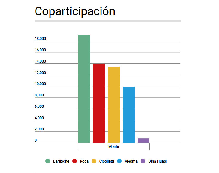 Según estimaciones del Ministerio de Economía, Bariloche recibirá 19.057.500 pesos en el transcurso del año. Una escala más abajo están Roca con 13.955.700 y Cipolletti con 13.429.900, mientras que Viedma, la capital provincial, obtendrá 9.884.600 pesos.