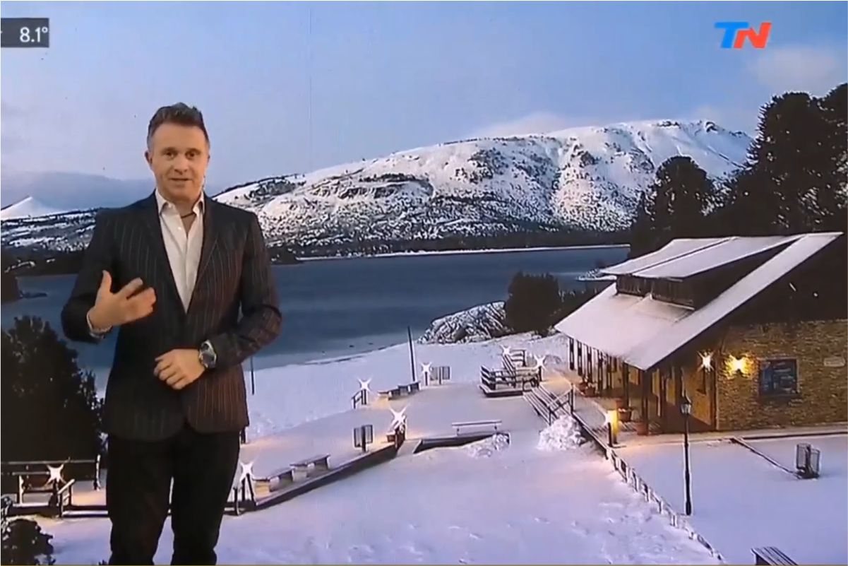 El programa con Sergio Lapegüe y el equipo periodístico de TN que va de 6:00 a 10:00 de la mañana, emitió las imágenes del Lago Aluminé y el Muelle mientras presentaba los títulos del día.