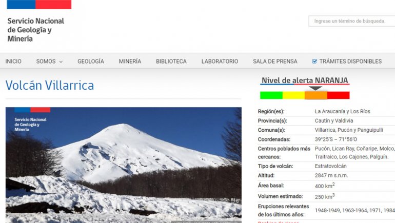 Autoridades sísmicas de Chile elevaron este lunes de alerta amarilla a naranja por las actividades que se presentan en el volcán Villarica. La formación se encuentra en la localidad de Coñaripe al sur de la región de La Araucanía, a la altura del paso fronterizo de Mamuil Malal.
