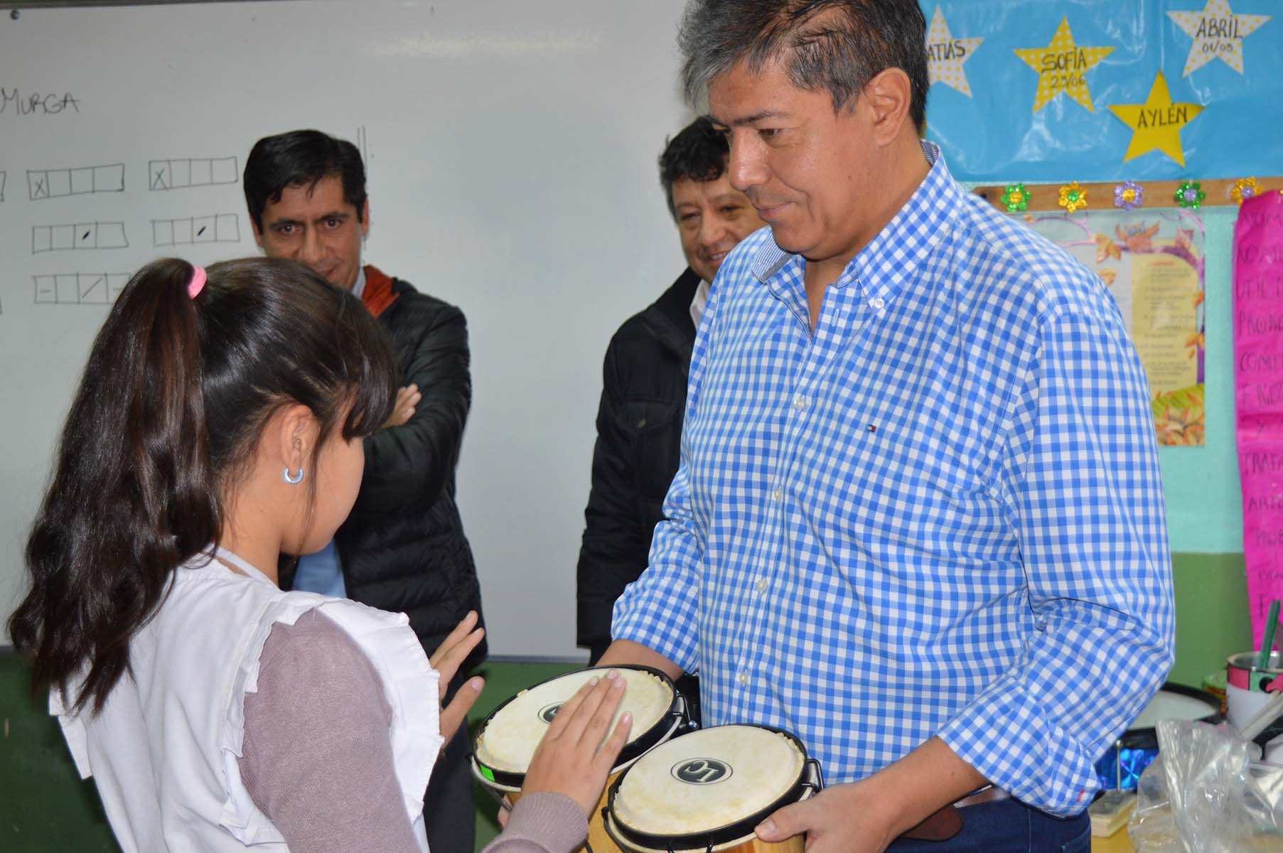 Por la mañana se dirigió junto al intendente de Chos Malal, Hugo Gutiérrez, a la localidad de Andacollo donde se reunió con el intendente Raúl Aravena; con quien sorprendieron con su visita a los alumnos de la Escuela N° 28 de la localidad entregando instrumentos musicales para el área de Música.