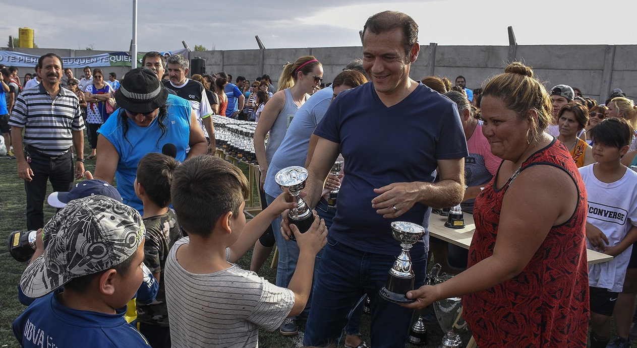 El gobernador Omar Gutiérrez participó este miércoles del cierre de la liga de fútbol de la asociación civil Un día diferente, que se realizó en el espacio deportivo de la entidad, ubicado en Novella y Necochea de la ciudad de Neuquén. Los partidos finales y premiaciones de los torneos reunieron a más de 700 jóvenes.