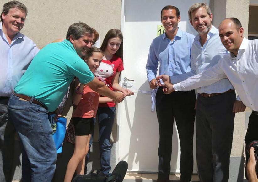 El gobernador Omar Gutiérrez; el ministro del Interior, Obras Públicas y Vivienda de la Nación, Rogelio Frigerio y el intendente de Centenario, Esteban Cimolai entregaron este jueves 190 viviendas en la Segunda Meseta de esa localidad. Se trata de unidades habitacionales de la Cooperativa de Vivienda y Consumo “La Ruca”, que fueron hechas de manera conjunta entre la Provincia y la Nación.