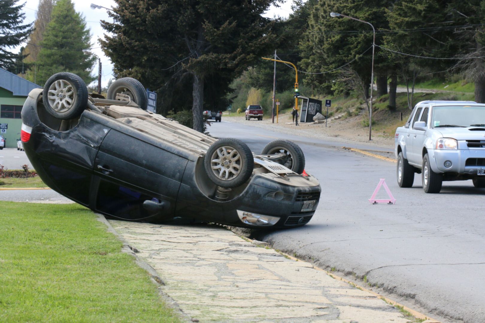 El comisario inspector de la subcomisaría 80, Víctor Aguirre, informó a ANB que recibieron el aviso alrededor de las 9.15 y acudieron inmediatamente al lugar, pero por fortuna no había heridos. En el Fiat Palio (marícula HDA 958), que terminó volcado sobre la rotonda, viajaban dos personas que fueron atendidas por personal del hospital zonal Ramón Carrillo, para constatar que no sufrieron golpes ni lesiones de ningún tipo.