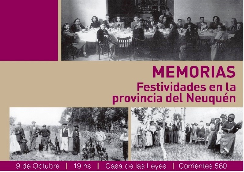El Complejo Cultural Casa de las Leyes de la e Legislatura invita a la inauguración de la exposición y presentación del libro Memorias. Festividades en la provincia del Neuquén, el viernes 9 de octubre a las 19, en Casa de las Leyes, ubicada en calle Corrientes 560 de Neuquén capital.