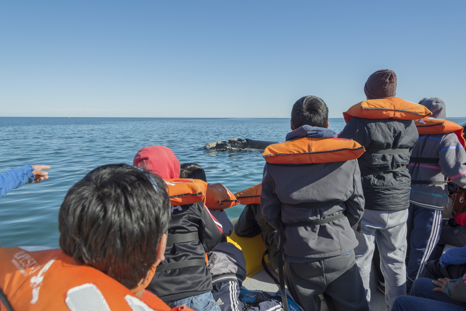 El coordinador del Centro Nayahue, Germán Rausch, destacó que los niños del interior de la provincia “son más observadores que los de ciudad” y agregó que “se sorprendieron de poder ver de cerca las ballenas.