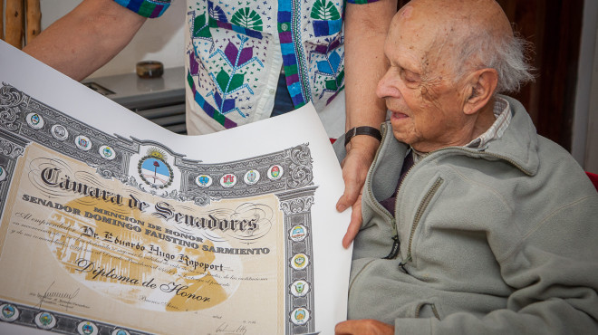 “Es un reconocimiento demasiado ostentoso y agradezco que me lo hayan enviado ya que tengo problemas para trasladarme. ¿Cuál fue mi mayor logro? Poder explicar lo inexplicable”, dijo Rapoport, en su último diálogo con DeBariloche.