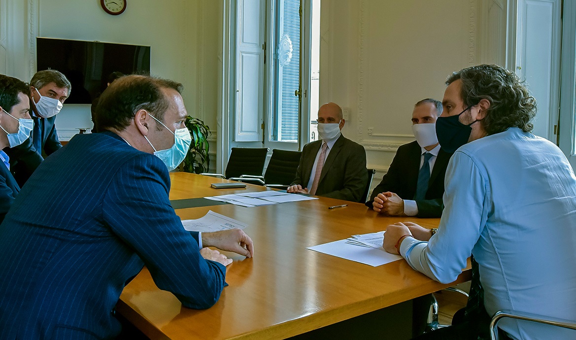 El gobernador Omar Gutiérrez firmó en Buenos Aires un convenio de asistencia financiera con el ministro de Economía de la Nación, Martín Guzmán. También estuvieron presentes el jefe de Gabinete de Ministros, Santiago Cafiero y el ministro del Interior, Eduardo de Pedro.