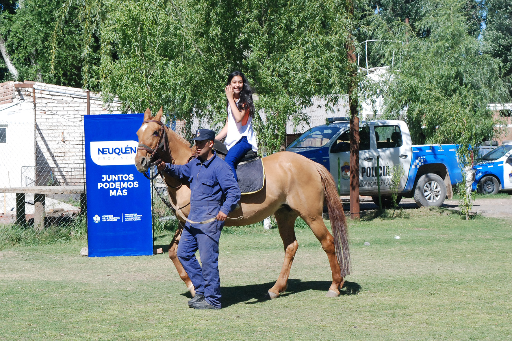 La acción se da en el marco del programa “Conociendo Instituciones” que lleva adelante la Subsecretaría de Asuntos Públicos a cargo de Osvaldo Llancafilo, en coordinación con la Subsecretaría de Seguridad de la provincia, la División Montada y Canes y la comisaria 18, representados por el comisario Zapiola y los subcomisarios Olave y Bruno. Estos encuentros permiten que los niños en edad escolar puedan conocer el funcionamiento de distintas instituciones y organismos, en este caso el funcionamiento del sector, tipo de montura, herraduras y vestimenta utilizada por los efectivos.