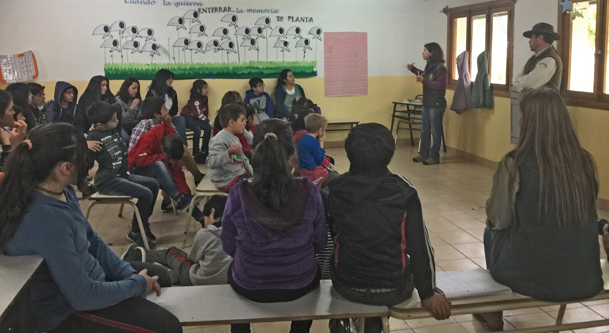 En una primera instancia a modo de diagnóstico, se compartieron aspectos de importancia de la fauna y la flora nativa del lugar junto a directivos y docentes, para planificar junto a ellos el encuentro que se realizó posteriormente con los alumnos y alumnas de cada establecimiento educativo.