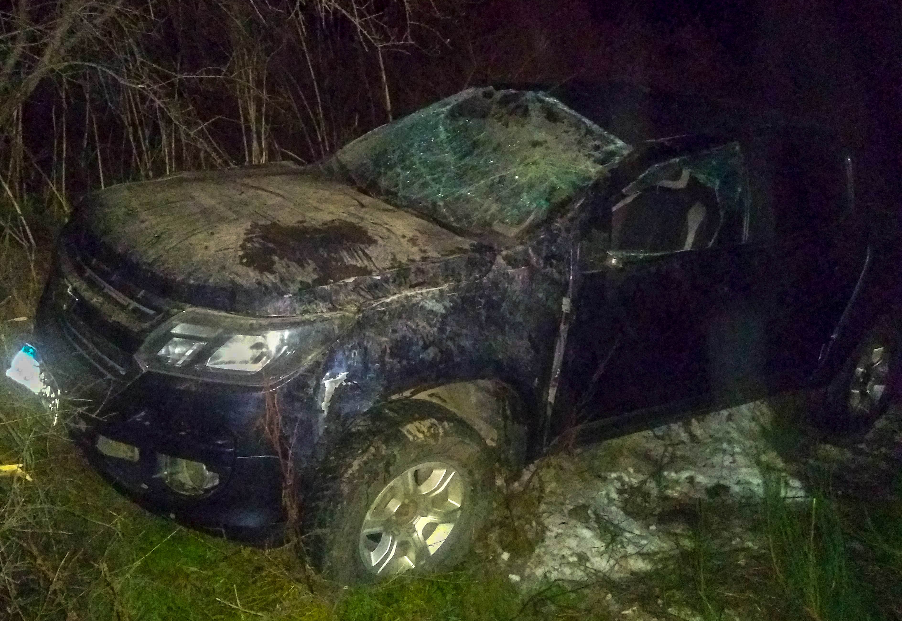 La pick-up, circulaba a la altura del Km 2230 de la Ruta Nacional 40 se cruzó de carril y después de dar aproximadamente 3 vueltas terminó sobre sus cuatro ruedas a unos 20 metros de la calzada.
