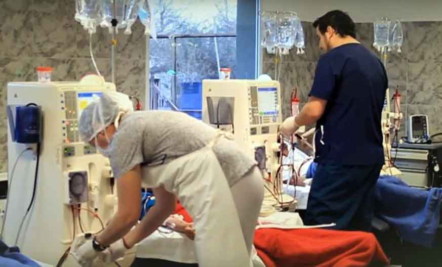 Ante la necesidad de un procedimiento de hemodiálisis, el personal de Fresenius trabaja de manera coordinada con el equipo de salud del hospital. Se trata de un procedimiento que demanda unas cuatro horas aproximadamente.