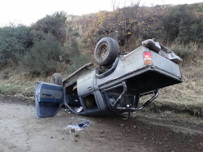 Minutos antes el camino había sido enripiado y se encontraba húmedo, lo que facilitó el vuelco. Los delincuentes circulaban a una importante velocidad porque eran perseguidos por el propietario de la camioneta que había sufrido el robo en su propio domicilio.