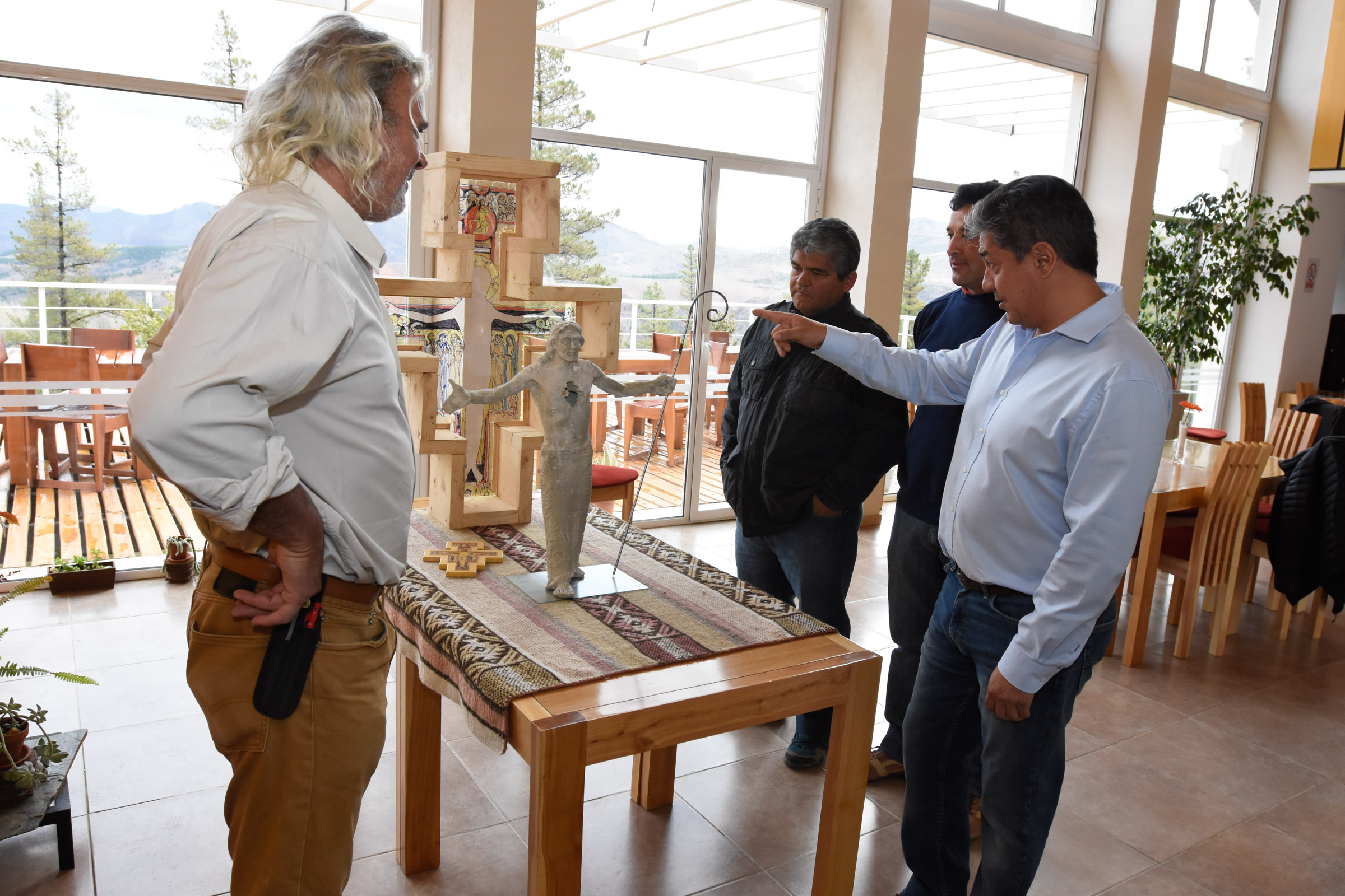 el arquitecto Alejandro Santana presentó ante el vicegobernador Rolando Figueroa y el intendente de la localidad, Luis Sepúlveda, el proyecto y la maqueta del monumento del Sagrado Corazón de Jesús que será emplazada en el Cerro de la Cruz.