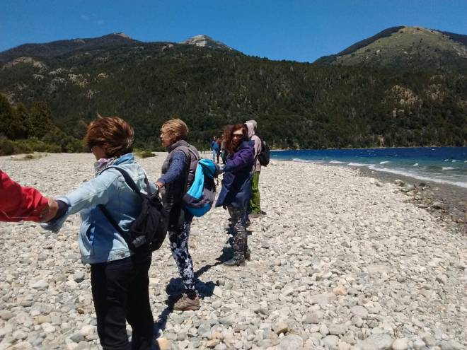 Se llevó a cabo un abrazo simbólico en el lago Moreno, en reclamo por la restitución de los 35 metros del camino de sirga.