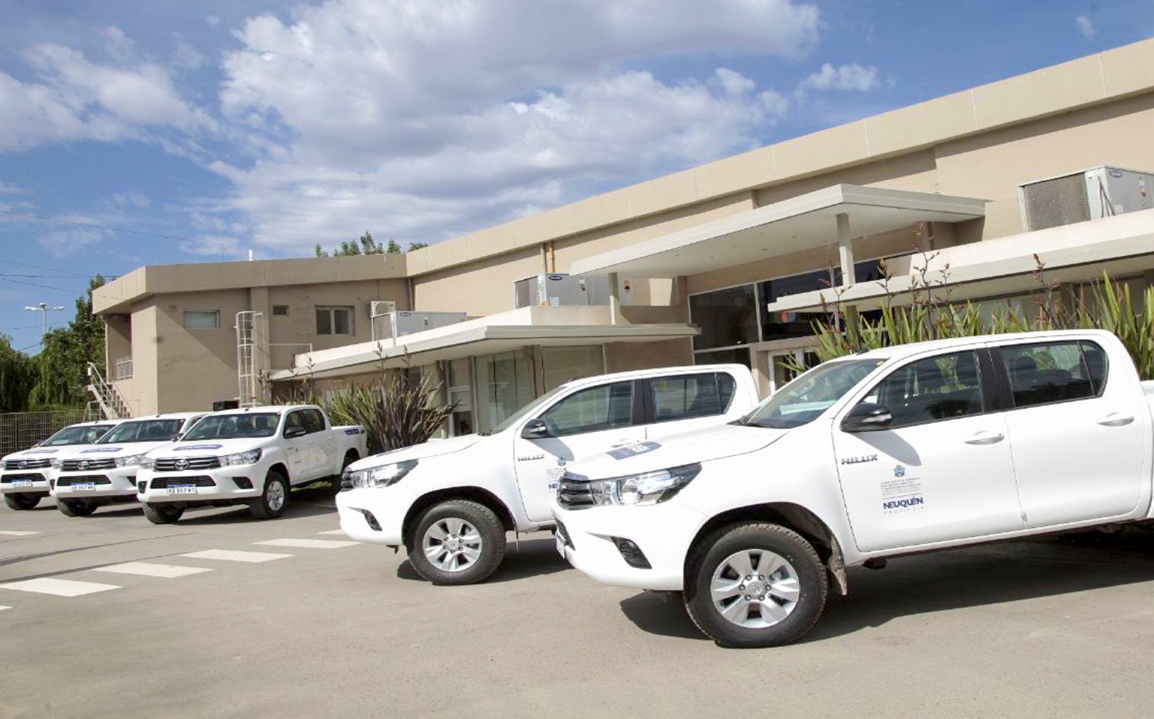 Se trata de cinco camionetas Toyota Hilux 4×4 diésel, doble cabina y doble tracción, que contaron con una inversión de 3.614.500 pesos. Los vehículos se destinarán a la dirección de Control Técnico Operativo, que depende de la subsecretaría y tiene asiento en Plaza Huincul.