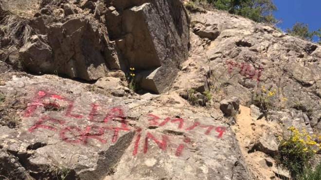 Se les ocurrió arruinar el paisaje pintando con un aerosol: “Flia. Fortini 3/1/19”