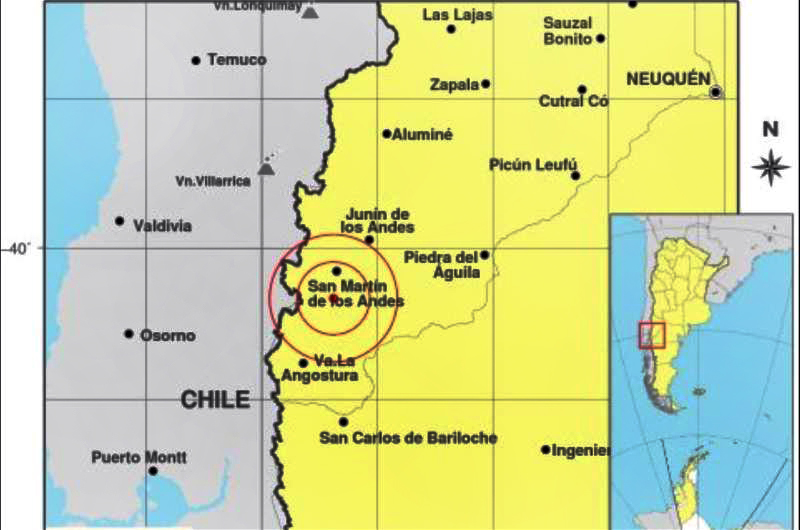 Según reportó el Instituto Nacional de Prevención Sísmica (Inpres), a las 23.01 de la noche del domingo, se produjo un terremoto de 5,3 grados en la escala de Richter, a 21 kilómetros de San Martín de los Andes.