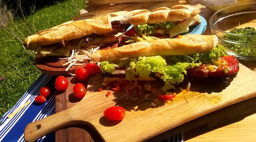 La Felicidad, de Centenario – Menú: Sándwich de bondiola con chutney de peras; Sándwich de vegetales en pan de remolacha; Sándwich de pollo con tomates quemados.