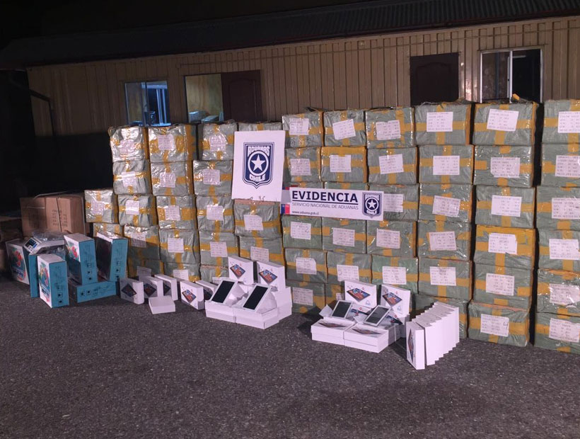 Fiscalizadores del Servicio Nacional de Aduanas de Osorno lograron interceptar a un transportista chileno que intentó cruzar hacia Argentina con un contrabando de 1.997 tablet de 9 y 7 pulgadas, 120.960 cucharas y cuchillos, 450 cilindros de gas refrigerante, 100 balanzas digitales, 5 sacos de peluches y un fardo de ropa usada.